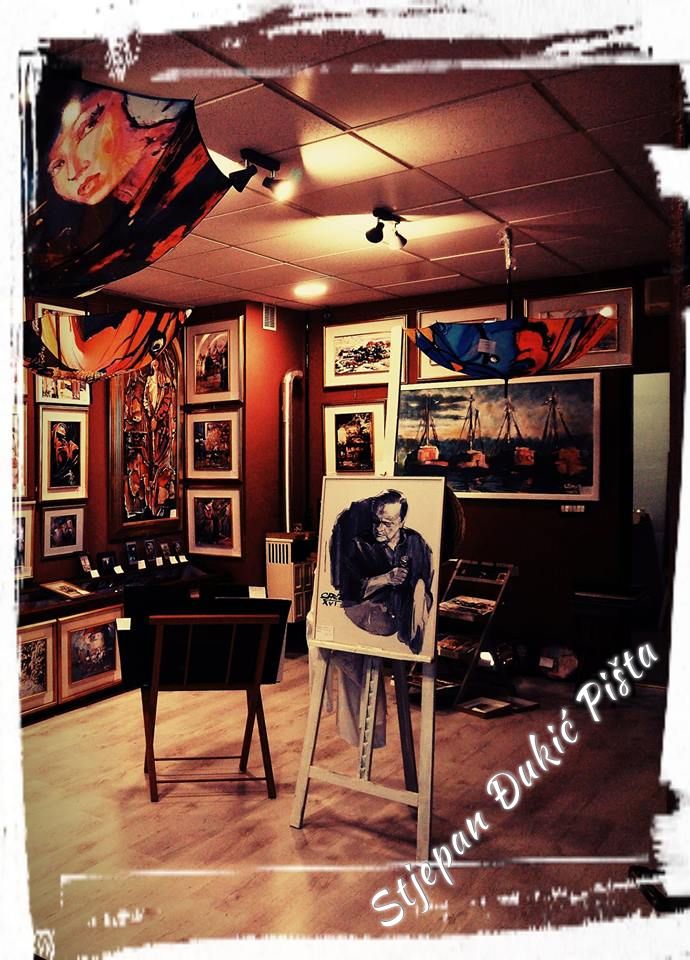 Stjepan Dukic Pista's Atelier is located in Veliko Trgovisce. We offer a wide range of original art, replicas in various compilations, art pieces of various other artists, and applications of original artist works on porcelain, murano glass, marble, jewellery, umbrellas and more - all in various price ranges.