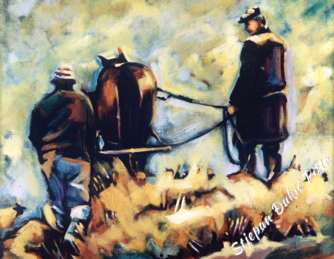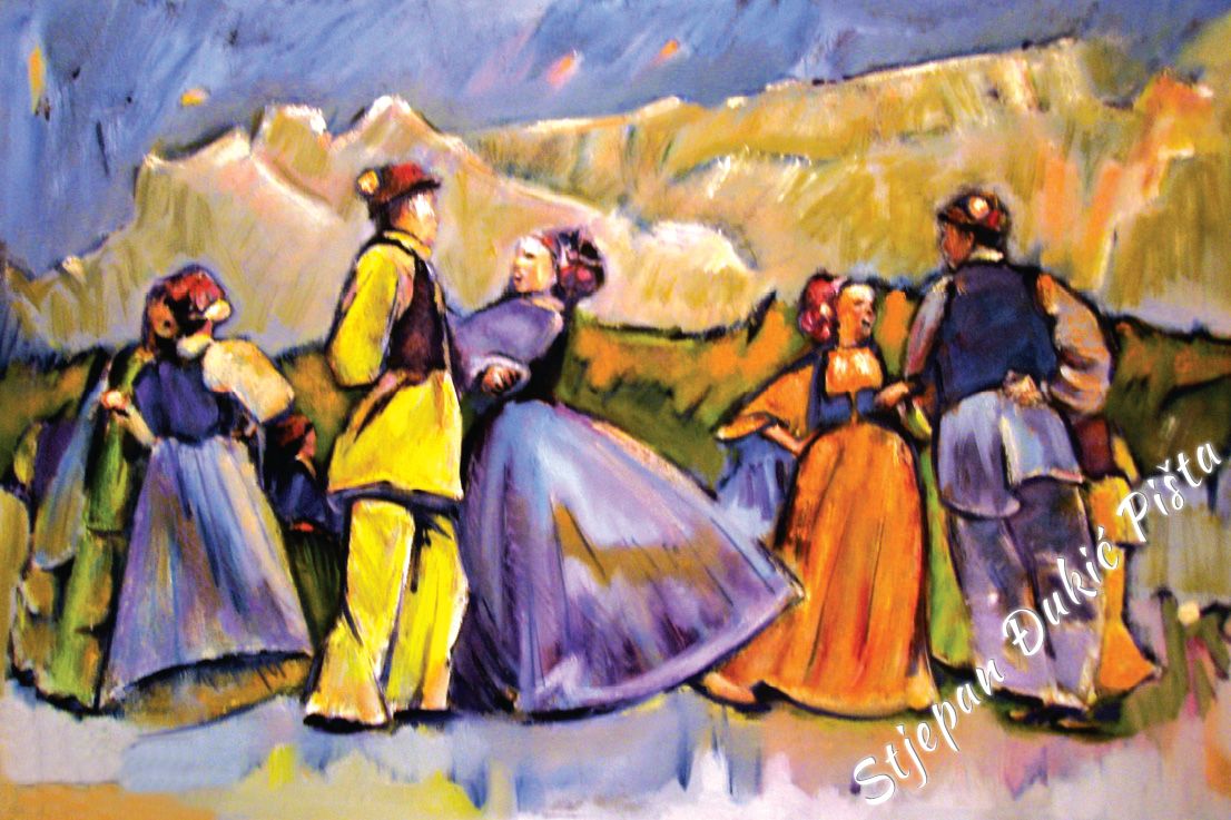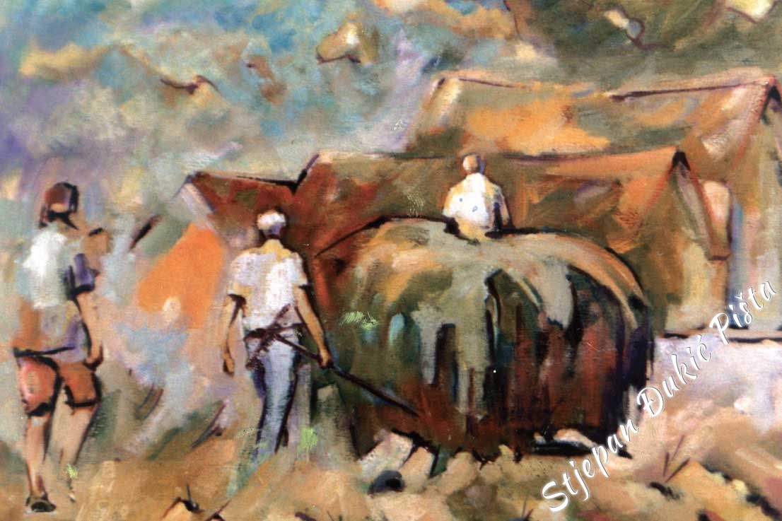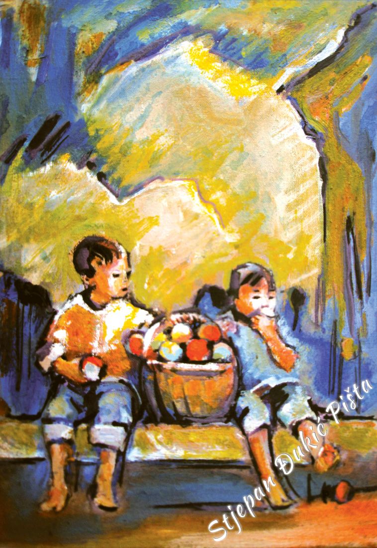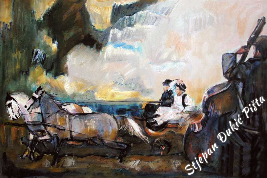 Stjepan Djukic Pista is undoubtedly a skilful painter, a great portraitist who mastered the secrets of the craft, artistically very potent, but the strength of his works lies in the need of thinking about the world in which he found himself and the intensity in doing that. He starts with a Human, tries to understand him, because it is he who shapes the history. He travels from birth to death and in different ways, deliberately or unintentional, impacts the destinies of other people.