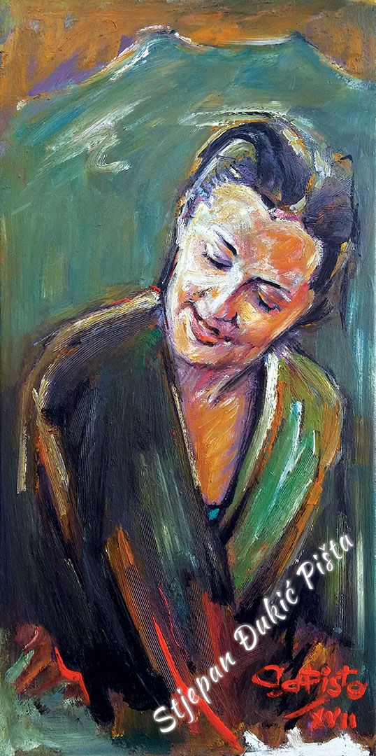 Just a portion of the portraits collection that had been painted over the last 40 years of creative work. You can find 110 portraits below, which have been photographed and prepared for web presentation. The color reproduction may not be equivalent to the original (due to the lighting conditions), but has been adjusted to look as the original image in broad daylight. If you own a portrait from Pišta, that isn't visible in the list below, feel free to contact us about putting its photo on this web page. Over the years, over 300 portraits have been created, however, some weren't photographed upon their completion or some photos have been lost, so any help in making the portrait list complete is more than welcome.